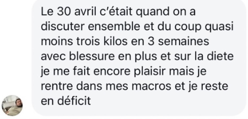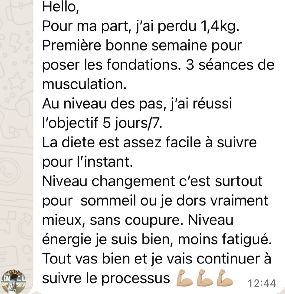 Plan alimentaire et objectifs d’activité fournis, la musculation reste à gérer par soi-même.